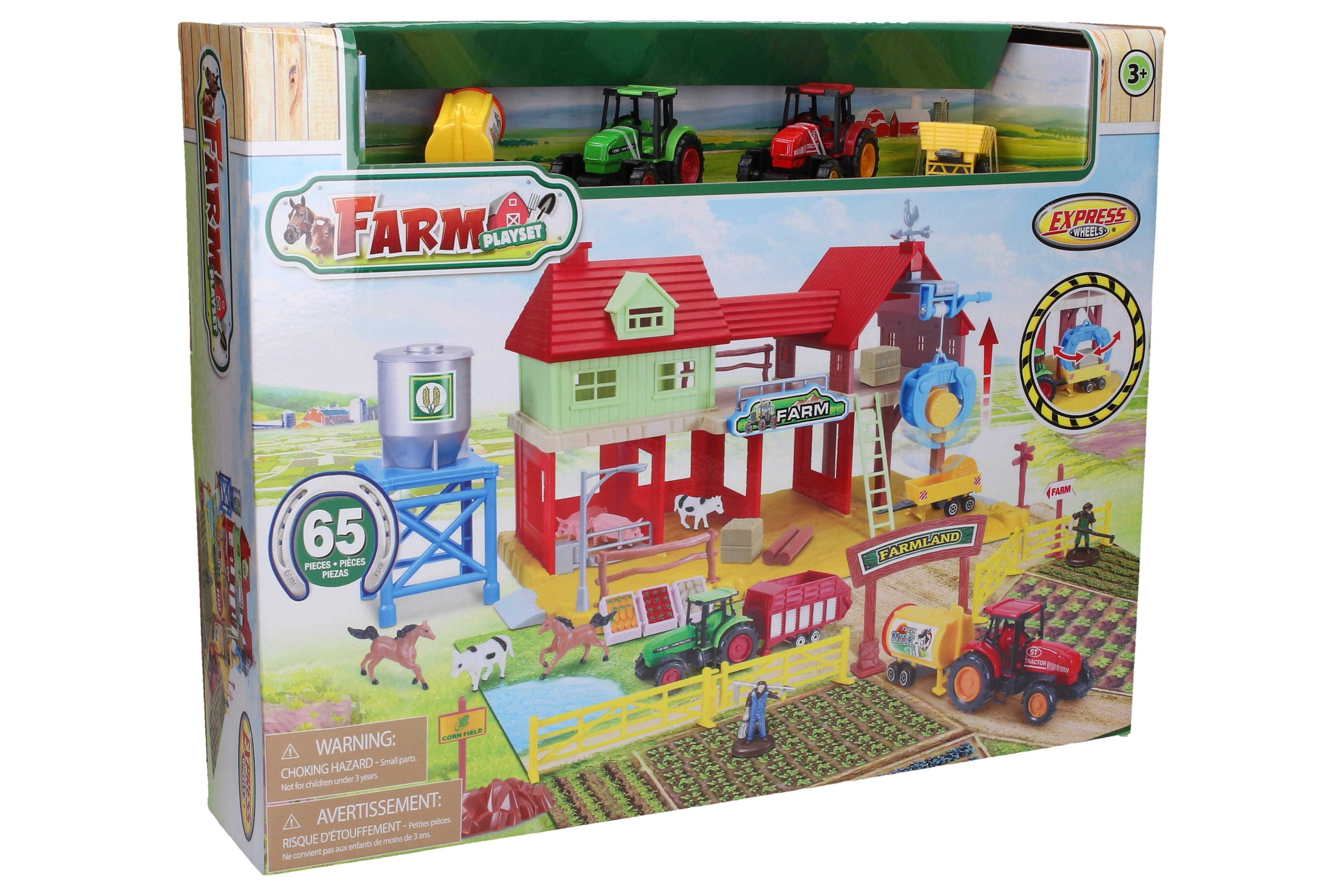 Ανακαλύψτε τη μαγεία της υπαίθρου με αυτό το πλήρες σετ φάρμας για παιδιά. Περιλαμβάνει ό,τι χρειάζεται για δημιουργικό παιχνίδι: χάρτη παιχνιδιού, κτίριο και στάβλο, γερανό με μανιβέλα, δύο τρακτέρ με αξεσουάρ, φιγούρες αγροτών και ζωάκια καθώς και περίφραξη, πύλη και αξεσουάρ για έναν ρεαλιστικό κόσμο φάρμας.