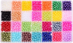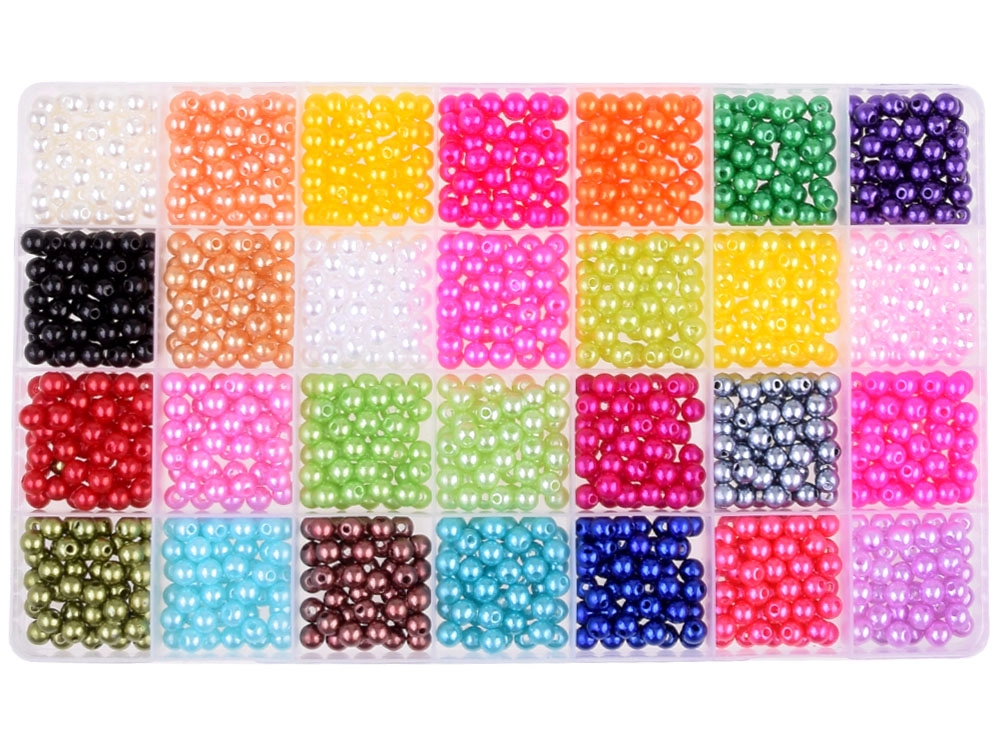 Δημιουργήστε τα δικά σας μοναδικά κοσμήματα με το σετ χαντρών μας, ιδανικό για την κατασκευή κολιέ, σκουλαρικιών ή δαχτυλιδιών. Οι χάντρες έχουν λεία επιφάνεια που αντανακλά το φως και λαμπυρίζει απαλά. Διατίθενται σε πλούσια παλέτα χρωμάτων, από το κλασικό λευκό, έως παστέλ αποχρώσεις ροζ, μπλε, πράσινου και μέχρι έντονα χρώματα όπως μοβ, κόκκινο ή πράσινο.