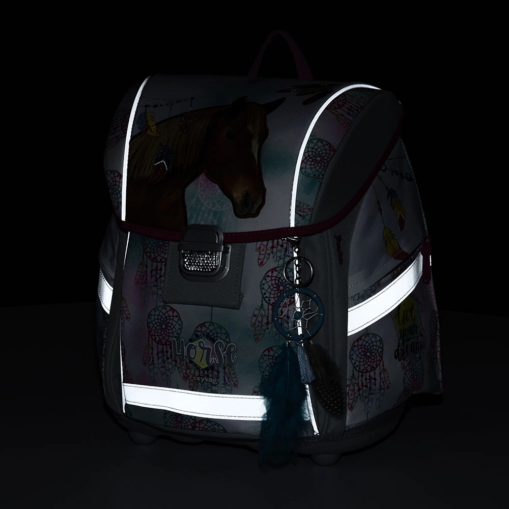 Το σχολικό σετ OXYBAG Premium Light – Άλογο Romantic συνδυάζει ένα υπερελαφρύ και ταυτόχρονα σταθερό σακίδιο με έξυπνο εξοπλισμό για άνετη καθημερινή χρήση. Χάρη στην διαπνέουσα επένδυση, τους φαρδείς μαλακούς ιμάντες και τον ιμάντα στήθους, εφαρμόζει σταθερά στην πλάτη και κατανέμει ομοιόμορφα το φορτίο. Το ελκυστικό μοτίβο αλόγου με απαλές αποχρώσεις και dreamcatcher θα ενθουσιάσει όλους τους φίλους των αλόγων.