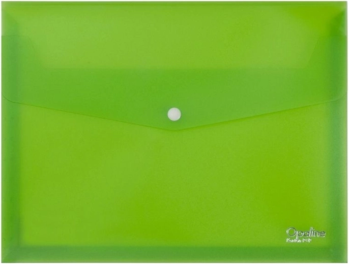 Χωρητική θήκη A4 σε κομψό πράσινο Opaline με επεκτάσιμο κάτω μέρος έως 2 cm και πρακτικό κλείσιμο με κουμπί-σούστα. Ιδανική για ασφαλή αποθήκευση και μεταφορά εγγράφων.