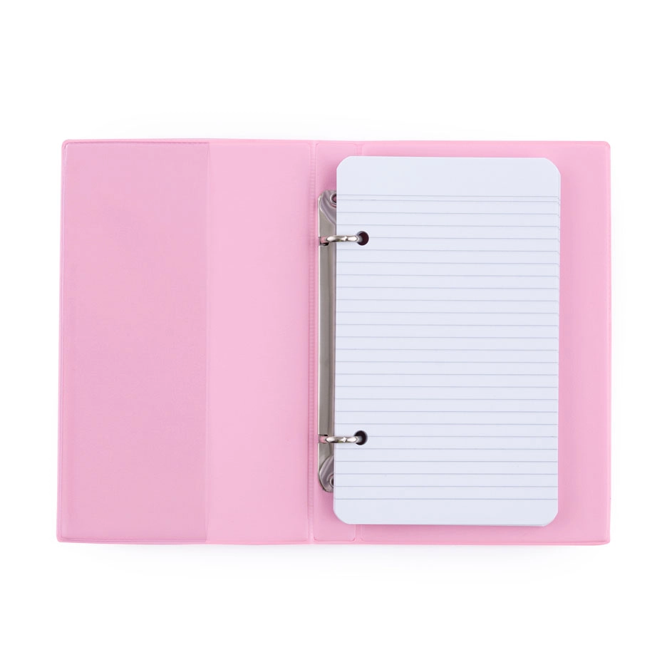 Πρακτικό δαχτυλιδωτό μπλοκ σε μοντέρνα παστέλ ροζ απόχρωση, ιδανικό για καθημερινές σημειώσεις ή προγραμματισμό. Περιλαμβάνει 100 γραμμωμένα φύλλα και επιτρέπει εύκολη αντικατάσταση ανταλλακτικών.