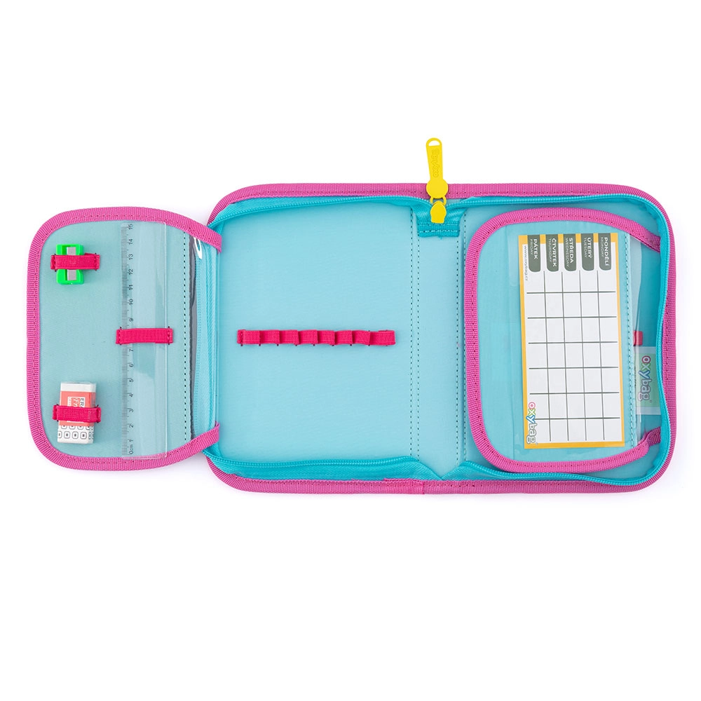Πρακτική και ελαφριά κασετίνα που διευκολύνει τα παιδιά στην οργάνωση των σχολικών ειδών. Χάρη στα δύο πτερύγια όλα είναι τακτοποιημένα και εύκολα προσβάσιμα. Οι 25 ελαστικοί θηλύκοι συγκρατούν με ασφάλεια μολύβια, στυλό, ξυλομπογιές και μικροαντικείμενα.