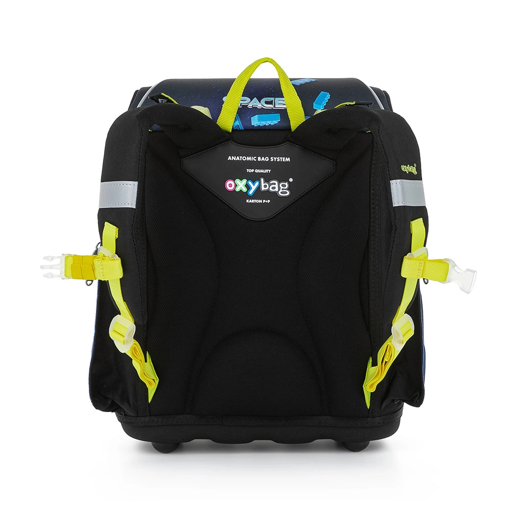 Η σχολική τσάντα Oxybag Premium Light Space συνδυάζει την ελαφρότητα με την ευρυχωρία, προσφέροντας εύκολη μεταφορά ακόμη και με μεγαλύτερο εσωτερικό αποθηκευτικό χώρο όγκου 27 l. Η τσάντα ζυγίζει μόλις 970 g χάρη στο ελαφρύ υλικό. Η ενίσχυσή της είναι κατασκευασμένη από αναπνεύσιμο υλικό, ευχάριστο στην αφή και άνετο κατά τη μεταφορά.