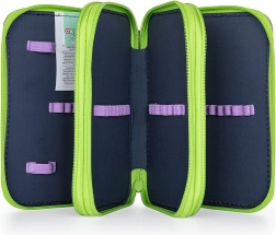 Η κασετίνα διαθέτει 40 ελαστικές θηλές για μολύβια, στυλό, ξυλομπογιές και μικρά σχολικά είδη. Χάρη στο ανθεκτικό φερμουάρ με μεγάλους δρομείς ανοίγει και κλείνει εύκολα, ενώ η διάφανη θήκη για το εβδομαδιαίο πρόγραμμα διευκολύνει την οργάνωση της σχολικής εβδομάδας.