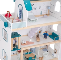 Το κουκλόσπιτο είναι εξοπλισμένο με πολλά δωμάτια και λειτουργικό ασανσέρ, προσφέροντας στα παιδιά ρεαλιστική και εμπλουτισμένη εμπειρία.