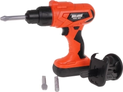 Το παιδικό τρυπάνι/κατσαβίδι με τροφοδοσία 2× AA μπορεί να βιδώνει και να ξεβιδώνει. Περιλαμβάνει 3 ανταλλακτικές μύτες και προσαρμογέα με πριόνι για ακόμα περισσότερη διασκέδαση.