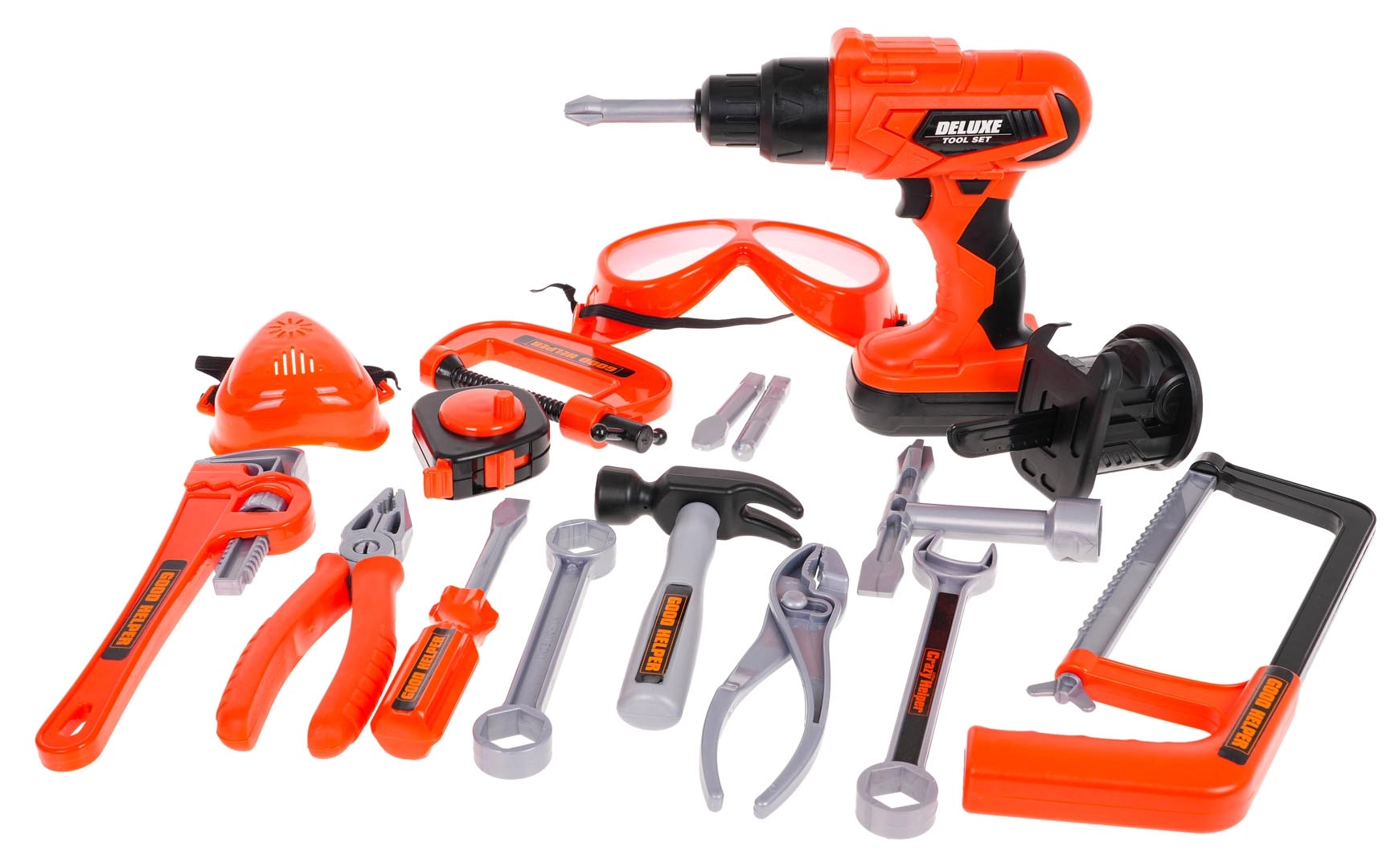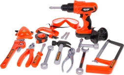 Σφυρί, πριονάκια, κατσαβίδια, κλειδιά, πένσα, προστατευτικά γυαλιά, μέτρο, βίδες, παξιμάδια και πείροι – όλα για ευφάνταστη κατασκευή και μάθηση μέσω παιχνιδιού.