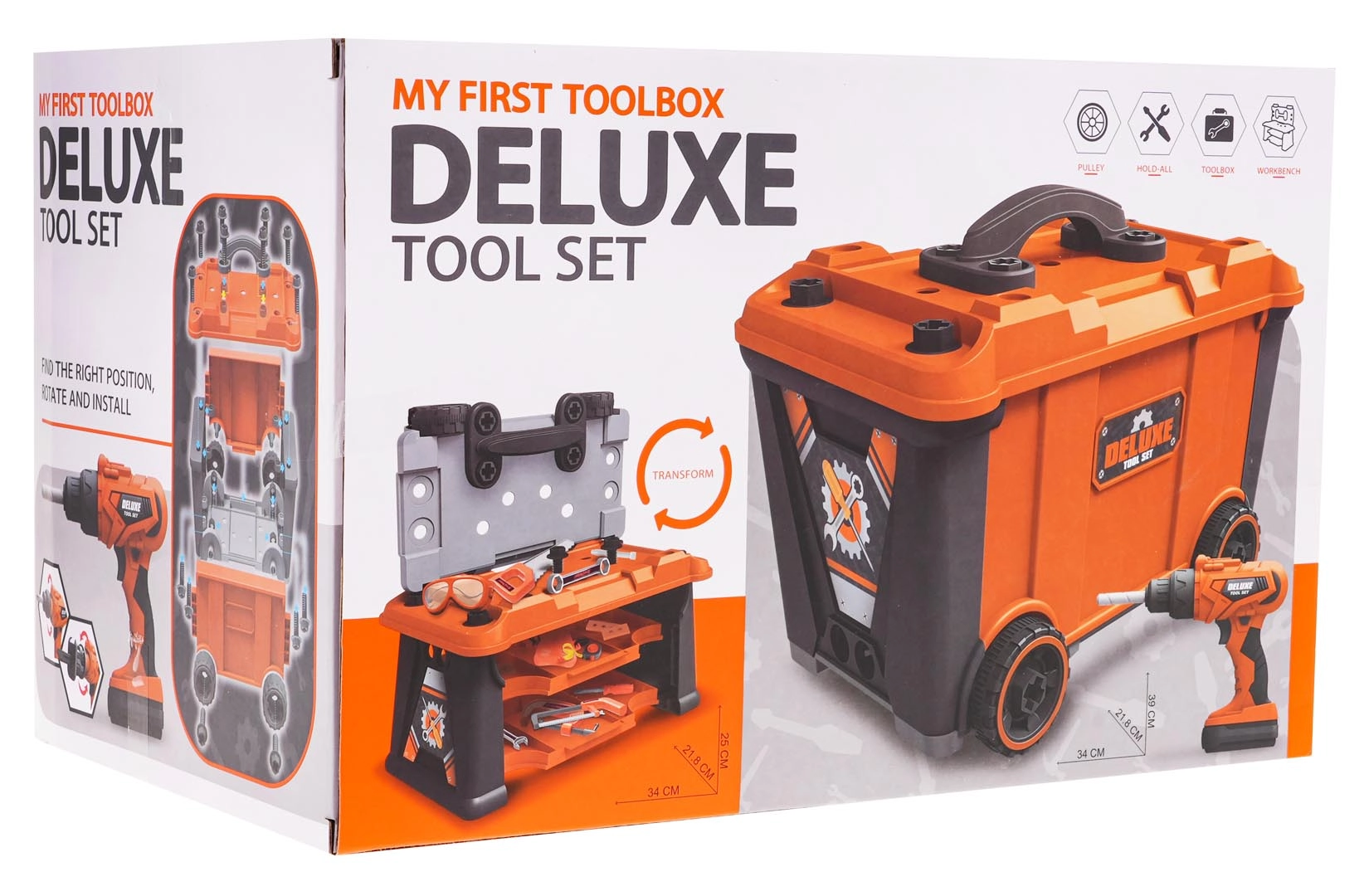 Μετατρέψτε το παιχνίδι σε μάθηση με το πρακτικό σετ για μικρούς μαστόρους: βαλίτσα και εργαστήριο 2σε1 με 65 τεμάχια, συμπεριλαμβανομένων ηλεκτρικού τρυπανιού/κατσαβιδιού με μπαταρίες, πριονιού, κλειδιών και προστατευτικών γυαλιών. Το σετ μεταμορφώνεται εύκολα από φορητή βαλίτσα σε πλήρως λειτουργικό μίνι εργαστήριο, αναπτύσσοντας τη λεπτή κινητικότητα, τη δημιουργικότητα και τη φαντασία. Κατάλληλο από 3 ετών.