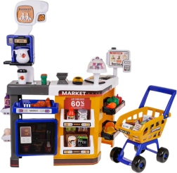 Περιλαμβάνεται επίσης μεγάλο καρότσι αγορών με ροδάκια και πλούσια αξεσουάρ: φρούτα, λαχανικά, αρτοσκευάσματα, ποτά, γαλακτοκομικά, κέρματα και χαρτονομίσματα, κάρτα πληρωμής και ομοίωμα τηλεφώνου. Τα παιδιά δοκιμάζουν διαφορετικές μορφές πληρωμής – μετρητά, κάρτα και τηλέφωνο – και εξασκούν την ταξινόμηση και τη μέτρηση.