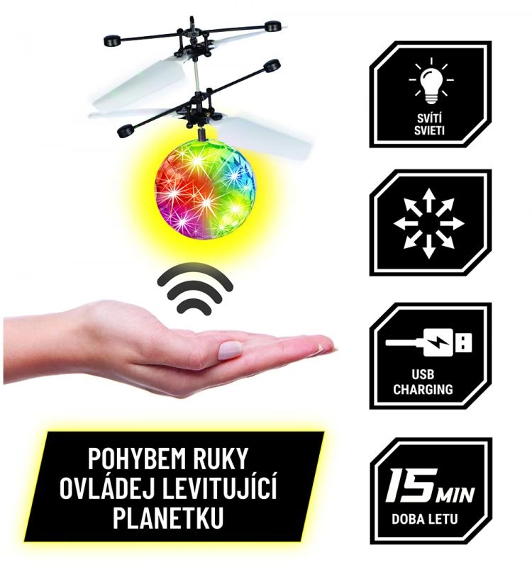 Σας παρουσιάζουμε τον αιωρούμενο πλανήτη DRIVERO, ο οποίος χάρη στην τεχνολογία αιώρησης μπορεί να κινείται ελεύθερα στον αέρα. Αυτό το παιχνίδι είναι ιδανικό για όποιον αναζητά διασκέδαση και καινοτομία μαζί. Ο τηλεχειρισμός επιτρέπει να κατευθύνετε τον πλανήτη προς όλες τις κατευθύνσεις και να δημιουργείτε εντυπωσιακά φωτεινά εφέ που φωτίζουν κάθε χώρο.