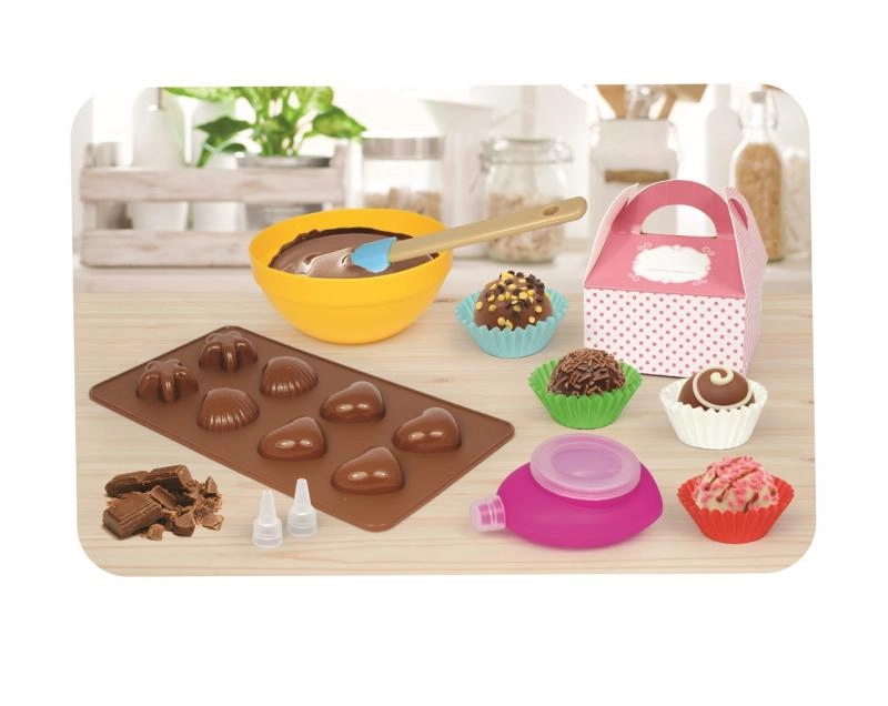 Περιλαμβάνει μπολ, σπάτουλες και φορμάκια που χρειάζονται τα παιδιά για να φτιάξουν σοκολατένιες λιχουδιές.
