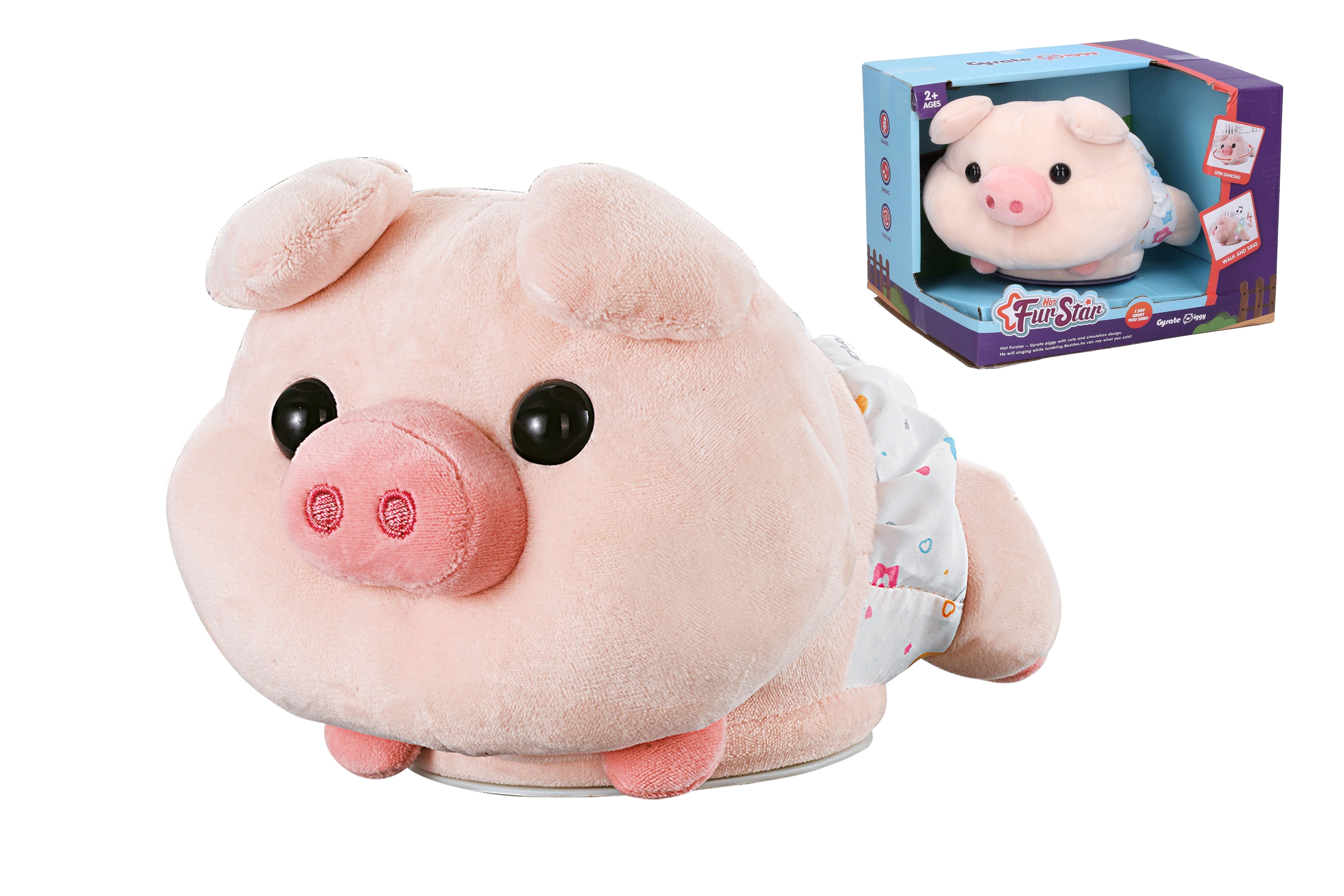 Αυτό το διαδραστικό γουρουνάκι προσφέρει διπλή δόση διασκέδασης. Με τα φωτεινά και ηχητικά εφέ του χαρίζει στα παιδιά αξέχαστες στιγμές παιχνιδιού. Αρκεί να πατήσετε το κουμπί στην αριστερή πλευρά και το γουρουνάκι ξεκινά να κινείται με μελωδία, ενώ με επόμενο πάτημα επαναλαμβάνει ό,τι λέτε, και όλα αυτά εν κινήσει! Το γουρουνάκι ενεργοποιείται και απενεργοποιείται εύκολα με τον διακόπτη στο κάτω μέρος.