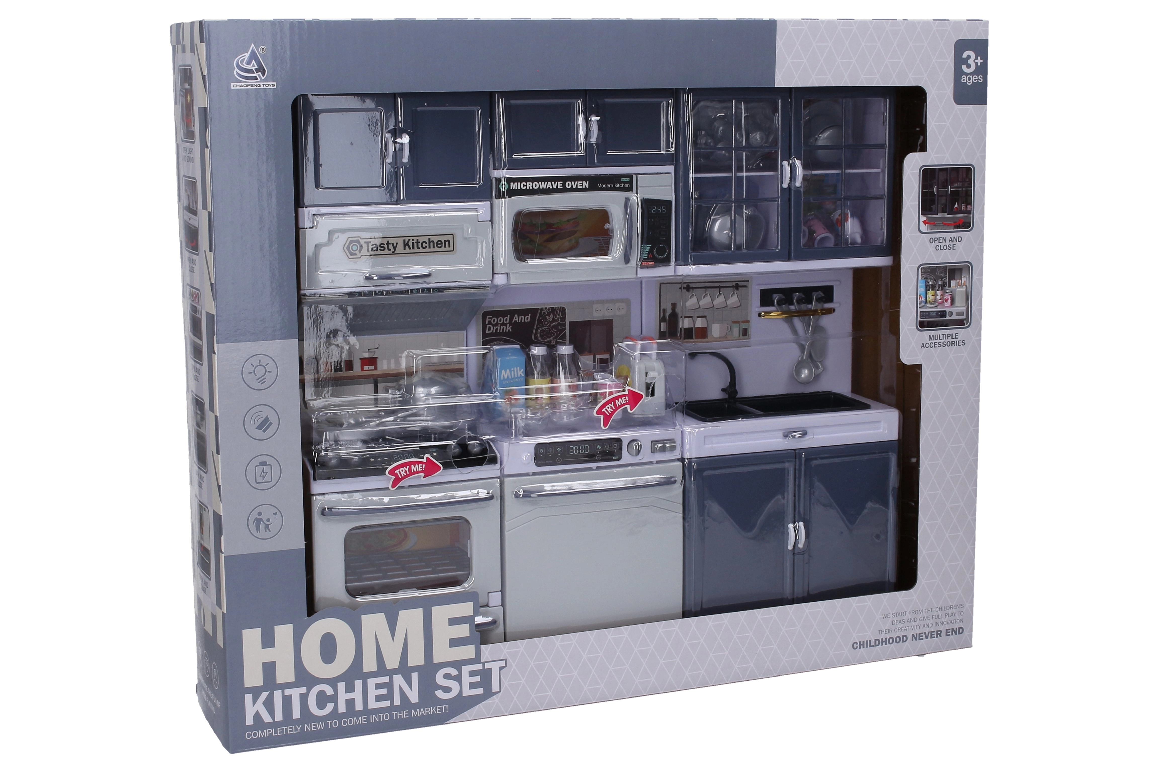 Αυτή η διαδραστική κουζίνα έχει σχεδιαστεί ώστε να προσφέρει στα παιδιά μια ρεαλιστική εμπειρία μαγειρέματος. Περιλαμβάνει: