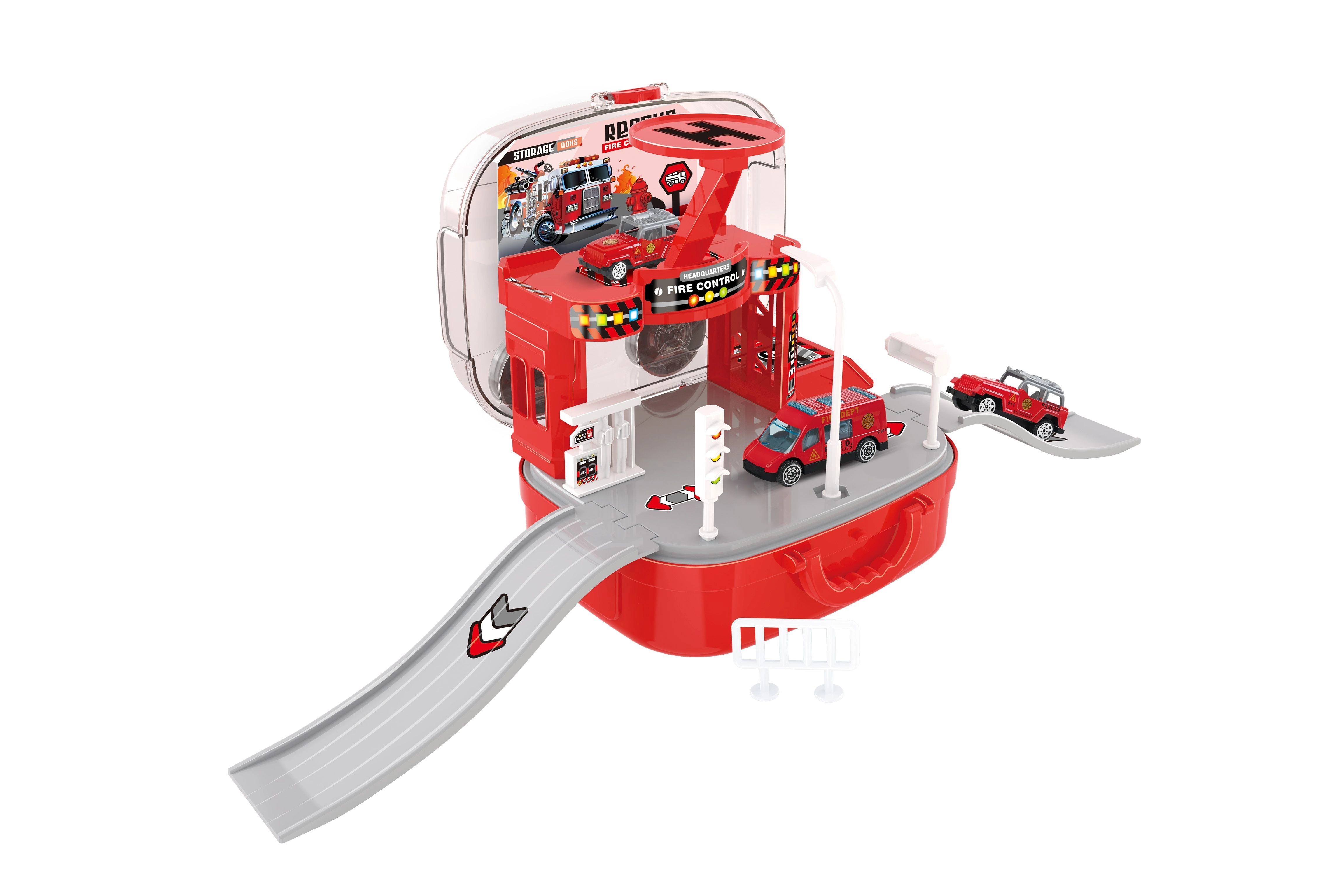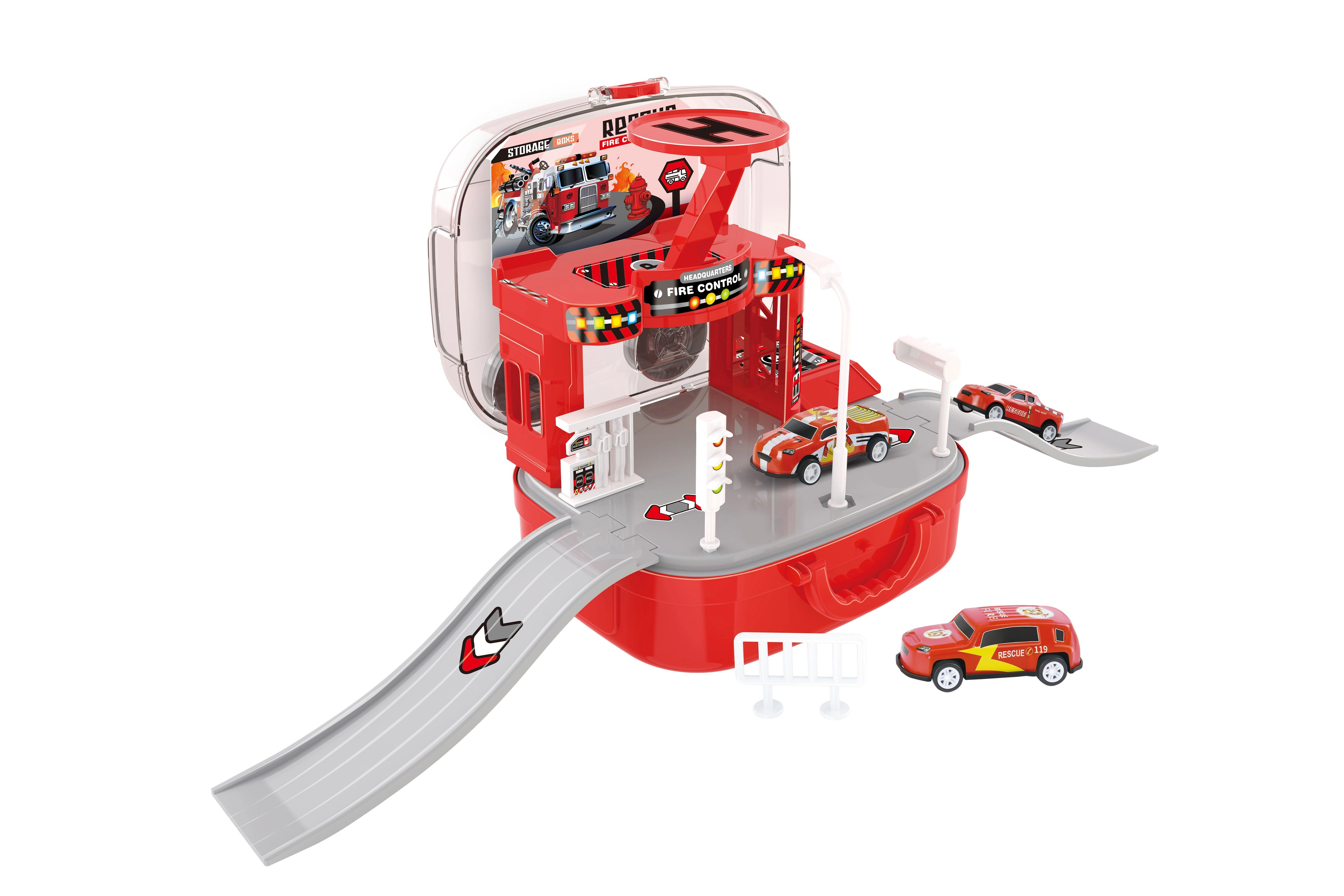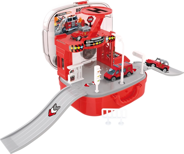 Αυτός ο καλοσχεδιασμένος πυροσβεστικός σταθμός σε βαλιτσάκι θα ενθουσιάσει τους μικρούς φίλους των διασωστών. Τα παιδιά μπορούν να δημιουργούν τις δικές τους αποστολές, να μετακινούν τα οχήματα μεταξύ ορόφων με το χειροκίνητο ασανσέρ και να επιστρατεύουν το ελικόπτερο για γρήγορες αποστολές. Χάρη στο πρακτικό βαλιτσάκι, όλος ο σταθμός κλείνει εύκολα μετά το παιχνίδι και μεταφέρεται.