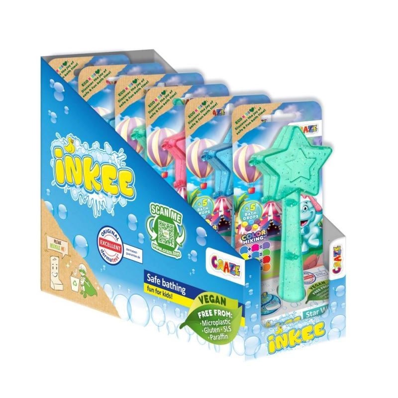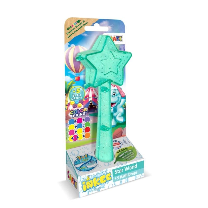 Μετατρέψτε την ώρα του μπάνιου σε μια αξέχαστη εμπειρία με το Μαγικό ραβδί Inkee. Κάθε αστεροειδές ραβδί περιέχει 5 σταγόνες για το μπάνιο που προσφέρουν υπέροχα χρώματα και παιχνιδιάρικες φυσαλίδες. Τα παιδιά μπορούν να παίζουν, να αναμειγνύουν διαφορετικά χρώματα και να δημιουργούν ουράνια τόξα μέσα στο νερό.