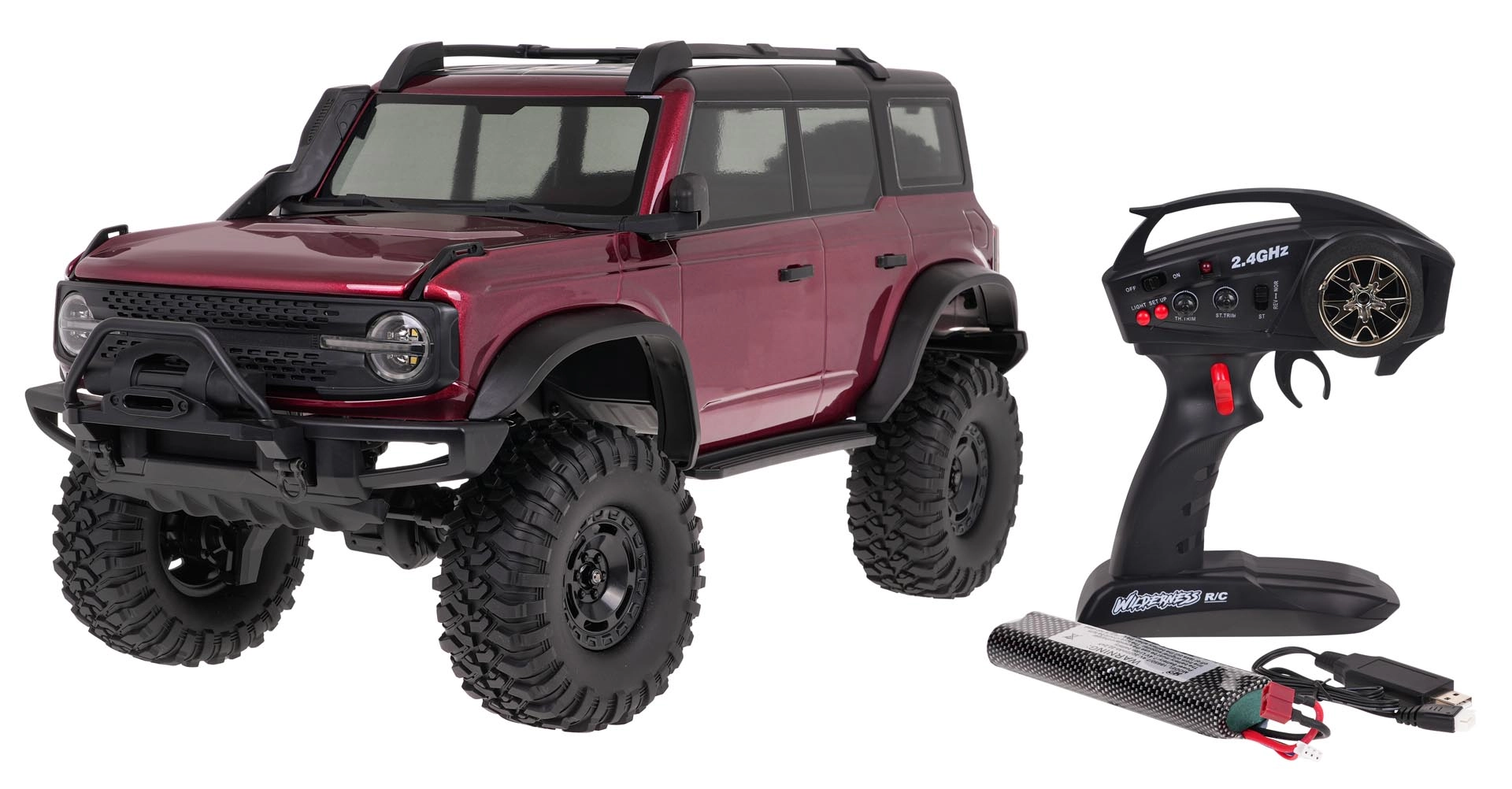 Το RC crawler WILDERNESS κλίμακας 1:10 συνδυάζει ανθεκτική κατασκευή με λεπτομερή σχεδίαση αμαξώματος. Η ανεξάρτητη ανάρτηση κάθε τροχού, οι μεταλλικοί σύνδεσμοι στα ψαλίδια και τα εμπρός/πίσω διαφορικά προσφέρουν άριστη πρόσφυση σε ανώμαλο τερέν. Τα μεγάλα ελαστικά με βαθύ πέλμα και η εξαιρετικά μεγάλη γωνία στρέψης αντιμετωπίζουν άφοβα πέτρες, ρίζες και πεζοδρόμια.