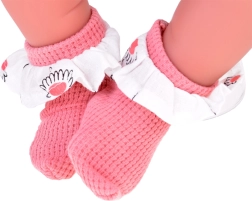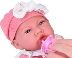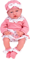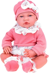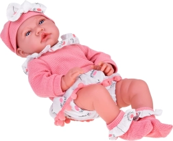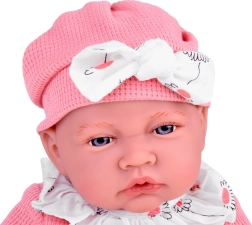 Ένα χαριτωμένο διαδραστικό μωρό ύψους 45 εκ. θα χαρίσει χαρά σε κάθε παιδί. Διαθέτει μαλακό σωματάκι, κινούμενα άκρα από μαλακό καουτσούκ, ρεαλιστικά χαρακτηριστικά και μεγάλα μάτια με βλεφαρίδες. Τη διασκέδαση ολοκληρώνουν οι 12 ηχητικές λειτουργίες, η ροζ πιπίλα με κλιπ και το απαλό ροζ σετ με τουνίκ, σλιπάκι, σκουφάκι και καλτσάκια.