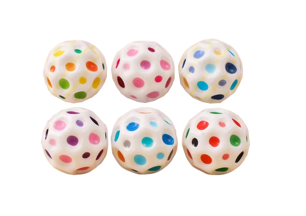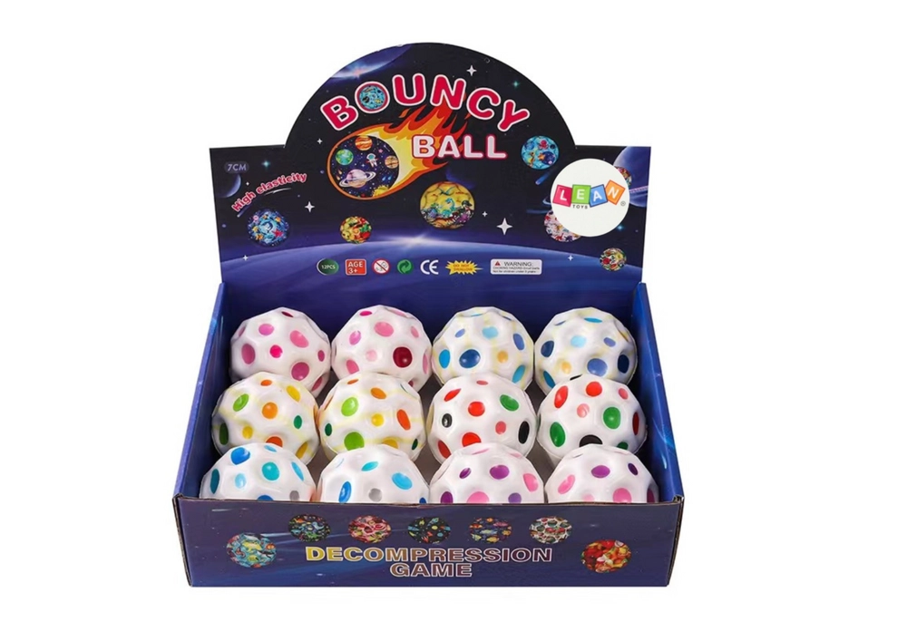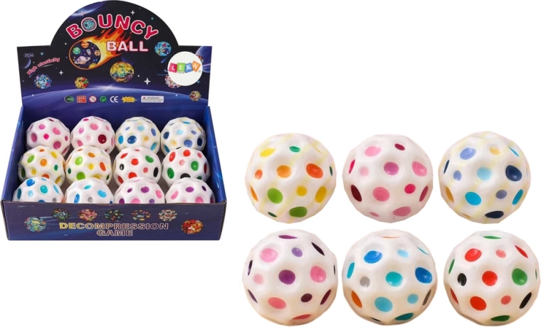 Διασκεδαστική διαστημική μπάλα σε λευκό χρώμα με πολύχρωμες εσοχές που προσφέρει γρήγορες αναπηδήσεις, δυνατότητα συμπίεσης για αισθητηριακή χαλάρωση και υπέροχη διασκέδαση για παιδιά και ενήλικες. Με διάμετρο 7 εκ. είναι ιδανική για μέσα και έξω και ενισχύει τη λεπτή κινητικότητα και τον συντονισμό.