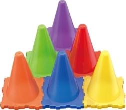 Σταθεροί πλαστικοί κώνοι σε ζωηρά χρώματα που τοποθετούνται εύκολα, ώστε να προσαρμόζετε τη δυσκολία του παιχνιδιού.