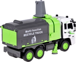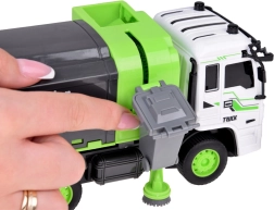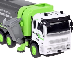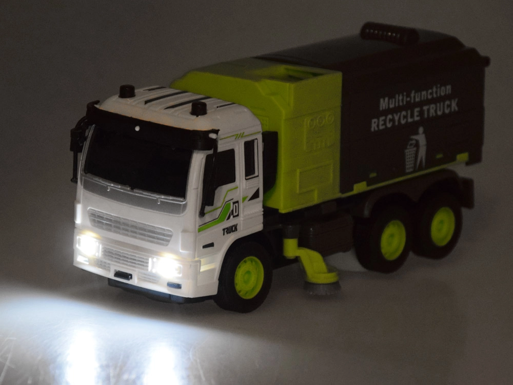 Περιλαμβάνει μηχανισμό ανύψωσης για τον κάδο, ανοιγόμενη πίσω πόρτα και ανατρεπόμενο κοντέινερ για ρεαλιστική φόρτωση και εκφόρτωση. Οι πλευρικές περιστρεφόμενες βούρτσες προσθέτουν αυθεντικότητα και αναπτύσσουν τη φαντασία και τη λεπτή κινητικότητα.