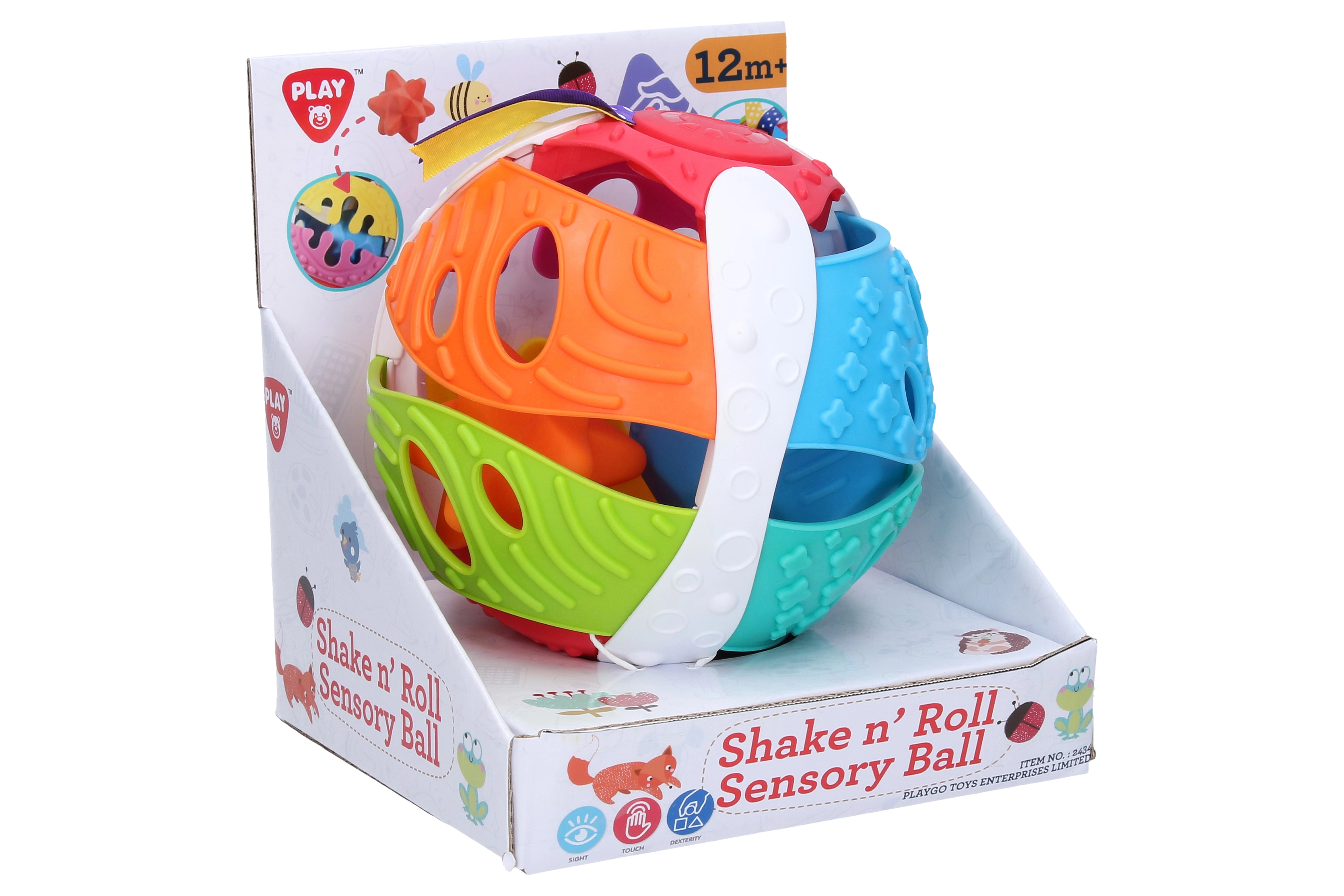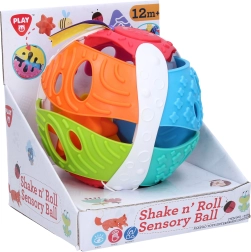 Η διασκεδαστική μπάλα τοποθέτησης Playgo με διάμετρο 15 cm προσφέρει σε παιδιά από 12 μηνών άφθονη αισθητηριακή ψυχαγωγία. Περιλαμβάνει 2 μαλακές μπαλίτσες, που τοποθετούνται μέσα στην μπάλα, και κορδέλα με περιστροφικό τροχό, ο οποίος κατά την περιστροφή παράγει κλικ-κλικ ήχο.