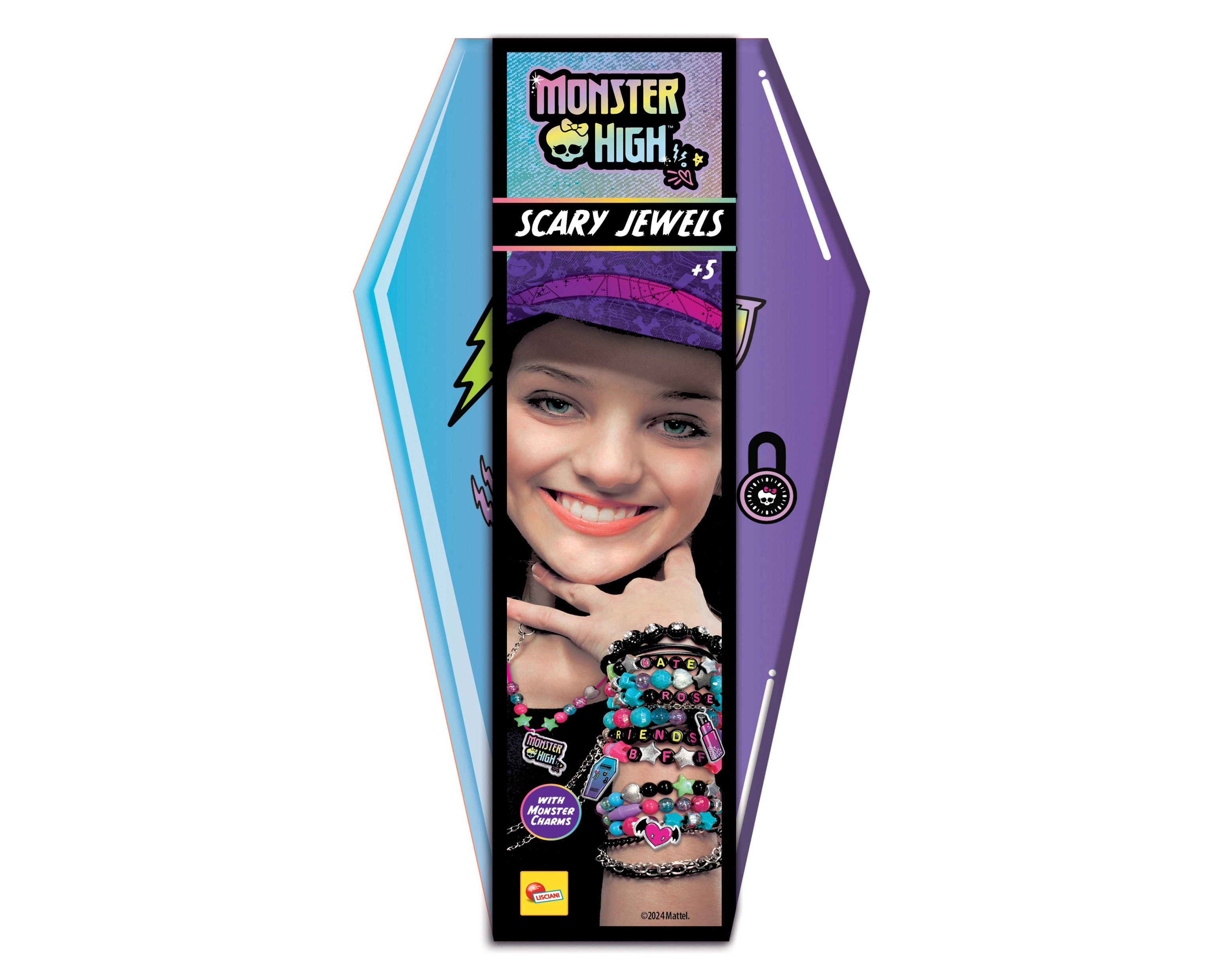 Το δημιουργικό σετ για την κατασκευή τρομακτικών βραχιολιών MONSTER HIGH θα ενθουσιάσει τους θαυμαστές της σειράς και τους μικρούς δημιουργούς. Στο πρακτικό κουτάκι σε σχήμα φέρετρου θα βρείτε χάντρες, γαντζάκια, κορδόνια και μενταγιόν με μοτίβα τεράτων για εύκολη και διασκεδαστική δημιουργία.