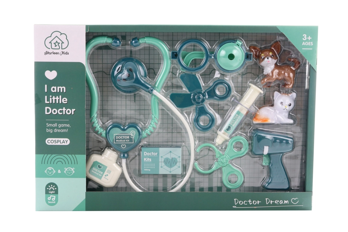 Αυτό το κτηνιατρικό σετ θα ενθουσιάσει κάθε μικρό «γιατρό» των ζώων. Τα παιδιά μπορούν να παίζουν φροντίζοντας το σκυλάκι και το γατάκι, να τους μετρούν τη θερμοκρασία και να τα περιποιούνται σαν πραγματικοί κτηνίατροι. Χάρη στο θερμόμετρο με μπαταρίες, το παιχνίδι γίνεται ακόμη πιο ρεαλιστικό και τα παιδιά απολαμβάνουν ατελείωτη διασκέδαση.