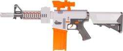 Το blaster είναι κατασκευασμένο από ποιοτικό πλαστικό και εφαρμόζει άνετα στο χέρι. Η εμβέλεια βολής είναι περίπου 15 μέτρα, ιδανική για μάχες στο σπίτι και σε εξωτερικούς χώρους. Η τροφοδοσία παρέχεται από 5× AA 1,5 V μπαταρίες (δεν περιλαμβάνονται στη συσκευασία).