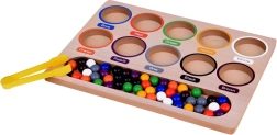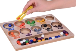 Η ξύλινη εκπαιδευτική μωσαϊκή με πολύχρωμες μπίλιες είναι κάτι περισσότερο από παιχνίδι. Είναι ένα εργαλείο που βοηθά στην ανάπτυξη της λεπτής κινητικότητας και του συντονισμού χεριών και ματιών. Τα παιδιά μαθαίνουν να αναγνωρίζουν διαφορετικά χρώματα, τα βασικά της μέτρησης και της οργάνωσης, γεγονός που υποστηρίζει τη γνωστική τους ανάπτυξη.