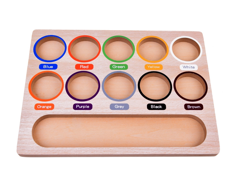 - ξύλινη βάση με 11 τρύπες και αγγλικές ονομασίες χρωμάτων,