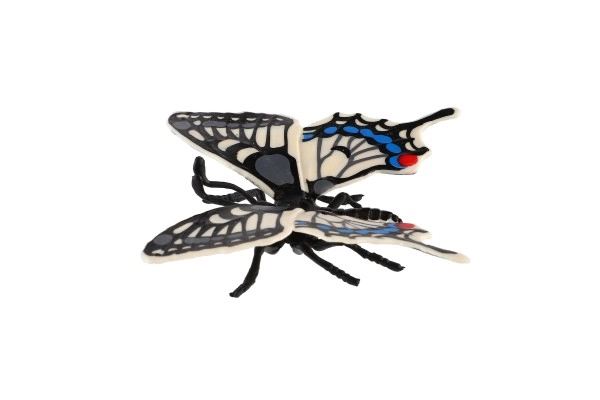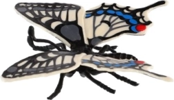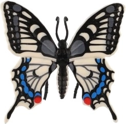 Αυτό το διακοσμητικό μοντέλο, εμπνευσμένο από το είδος πασχαλίτσα (Papilio machaon), ξεχωρίζει για την προσεκτική απόδοση των φτερών με έντονα μοτίβα σε μαύρο, λευκό και μπλε. Η ρεαλιστική εμφάνιση προσθέτει φυσική ατμόσφαιρα σε παιδικό δωμάτιο, γραφείο ή καθιστικό.