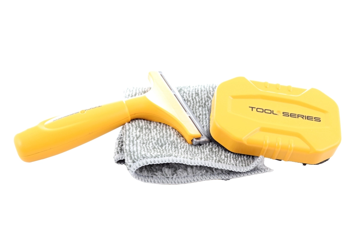 Η συσκευασία περιλαμβάνει όχι μόνο το ίδιο το πλυντήριο, αλλά και ξύστρα τζαμιών και πανάκι για εύκολο παιχνίδι και καθάρισμα.