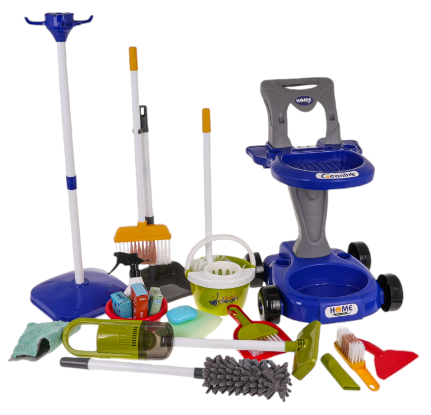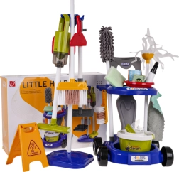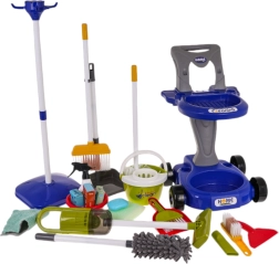 Διασκεδαστικό σετ καθαρισμού για παιδιά από 3 ετών που περιλαμβάνει 29 διαφορετικά εργαλεία και αξεσουάρ, όπως σφουγγαρίστρα, σκούπα και λειτουργική ηλεκτρική σκούπα που μαζεύει μικρές ακαθαρσίες.