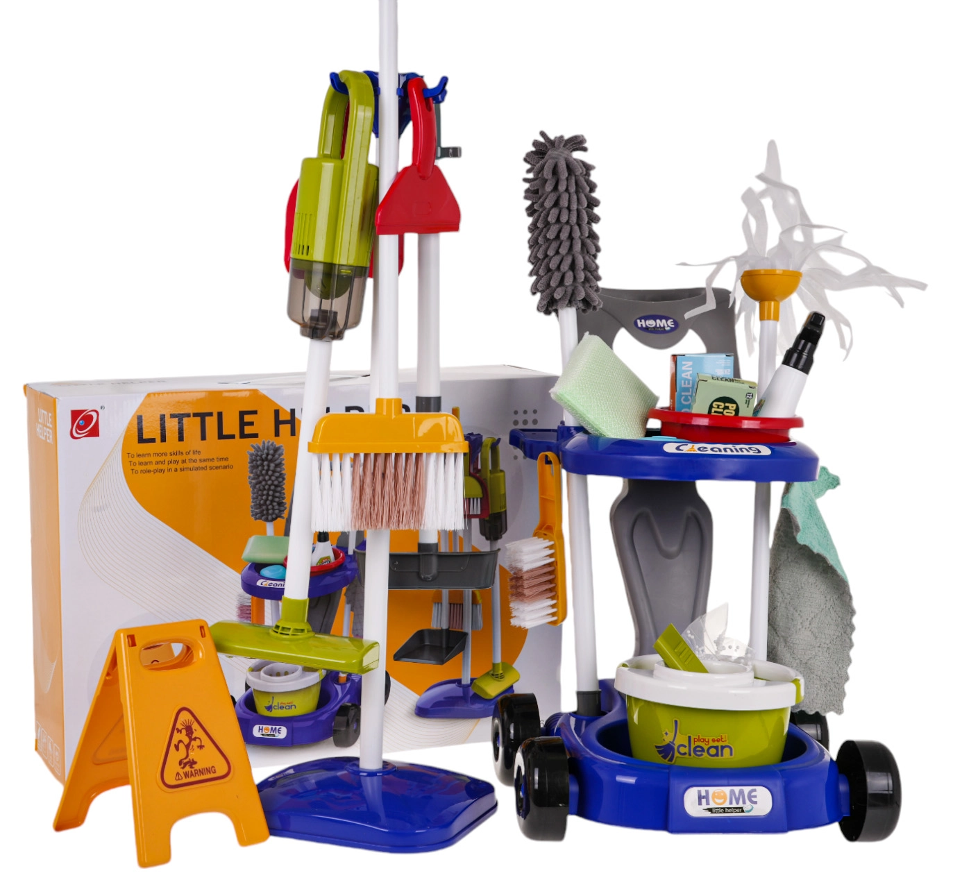 Ανακαλύψτε τη μαγεία του καθαρισμού με το πλούσια εξοπλισμένο σετ καθαρισμού για παιδιά από 3 ετών. Κατασκευασμένο από υψηλής ποιότητας πλαστικό σε ζωηρά χρώματα, το σετ περιλαμβάνει ανθεκτικό καροτσάκι καθαρισμού, λειτουργική ηλεκτρική σκούπα και πολλά ακόμη αξεσουάρ που ενθαρρύνουν τα παιδιά στη δημιουργική μάθηση και το παιχνίδι.
