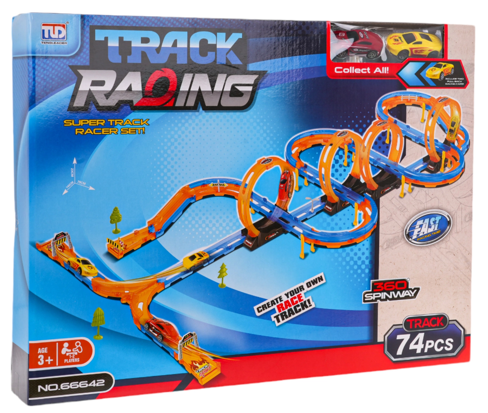 Ξεκινήστε μια διαδρομή ταχύτητας με τη μεγάλη αγωνιστική πίστα, που προσφέρει αξέχαστη διασκέδαση! Η πίστα είναι κατασκευασμένη από υψηλής ποιότητας πλαστικό σε ζωηρά χρώματα και περιλαμβάνει 74 κομμάτια για συναρμολόγηση σύμφωνα με τη δική σας φαντασία.