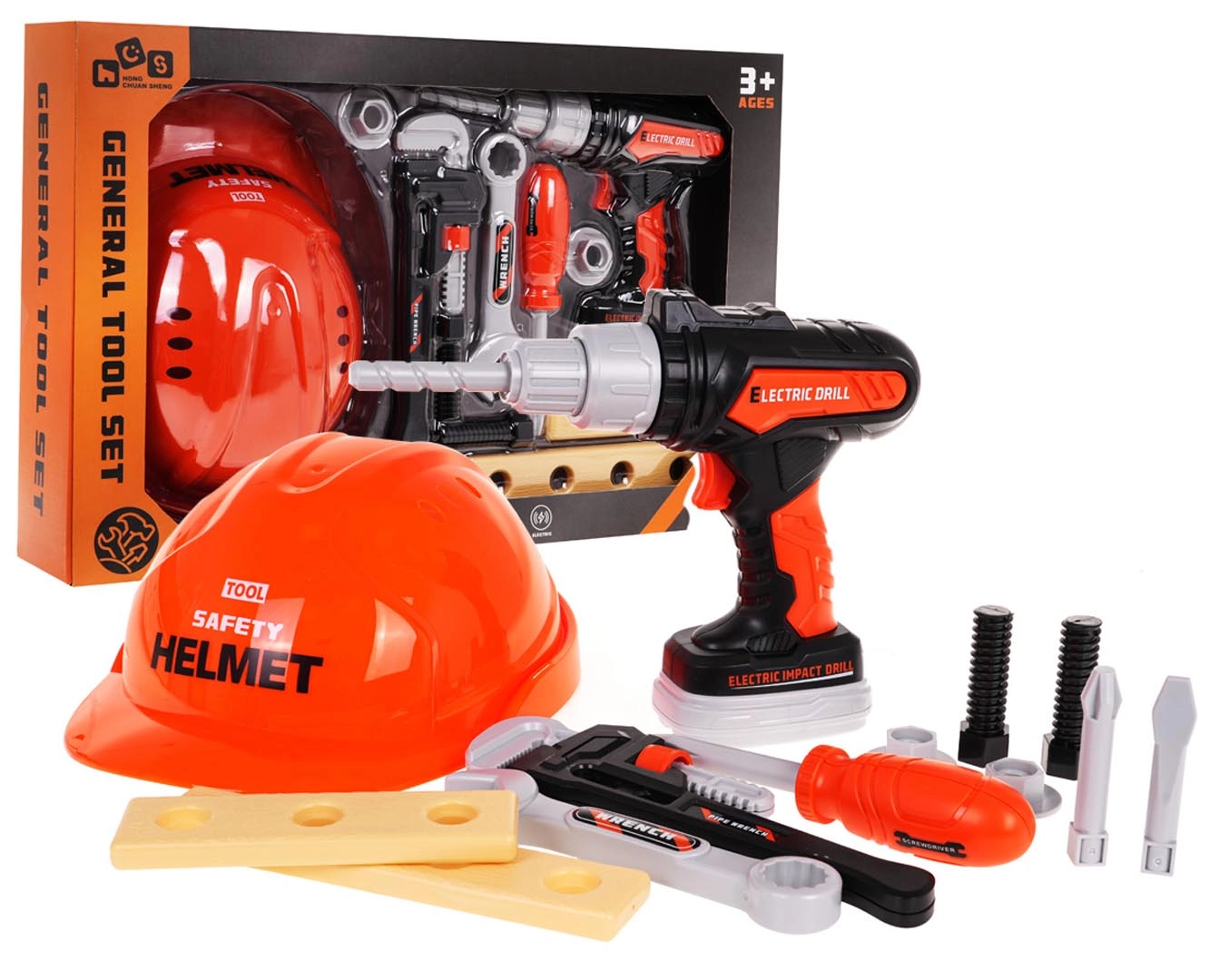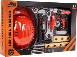 Αυτό το ρεαλιστικό παιδικό σετ εργαλείων προσφέρει ό,τι χρειάζεται ο μικρός κατασκευαστής: προστατευτικό κράνος, ηλεκτρικό τρυπάνι/κατσαβίδι με μπαταρίες, κατσαβίδι, κλειδιά, βίδες, παξιμάδια και ξύλινα πλακίδια για εξάσκηση. Χάρη στα ποιοτικά πλαστικά, το σετ είναι ανθεκτικό και ασφαλές για καθημερινό παιχνίδι.