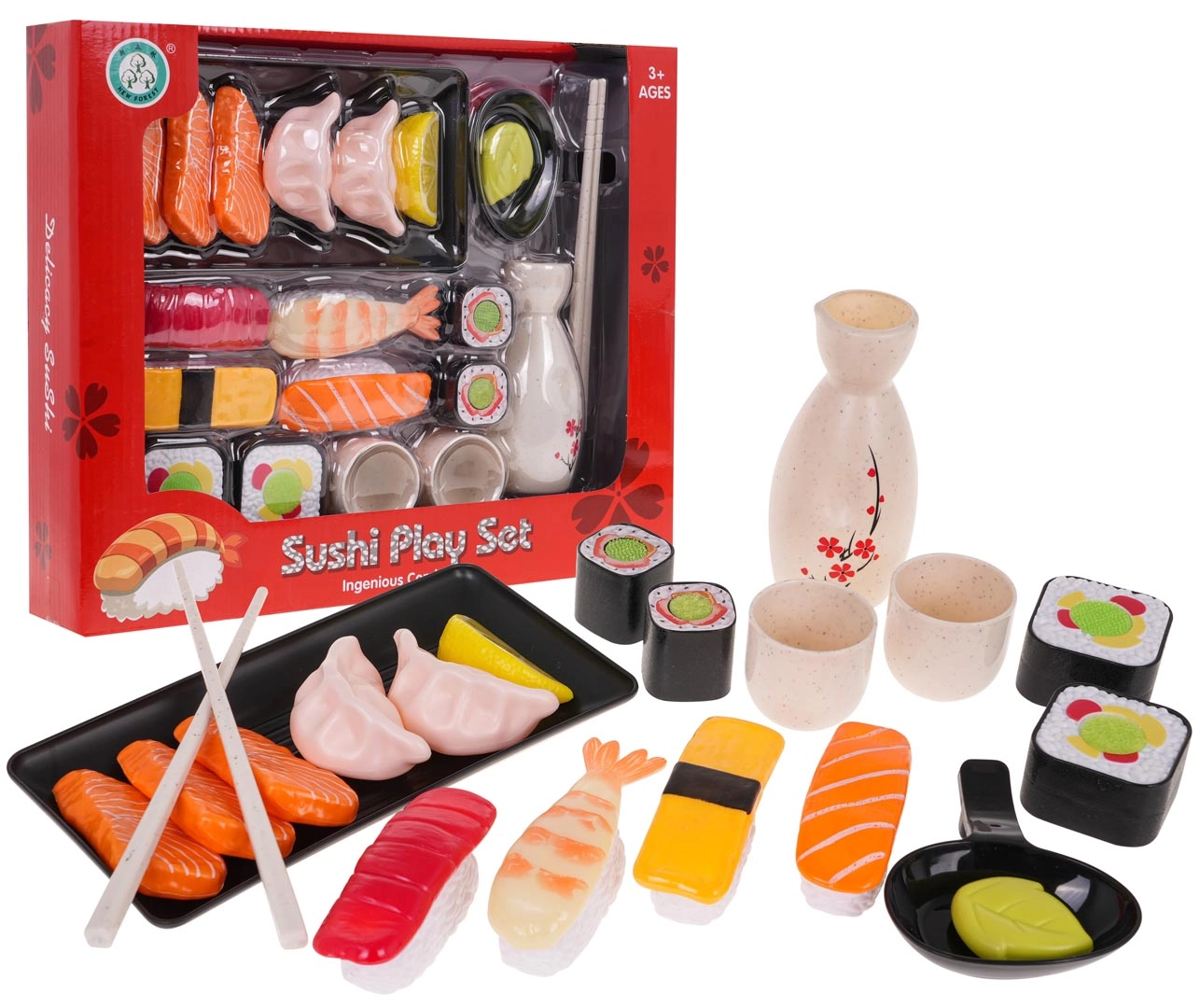 Στο σετ θα βρείτε όλα τα απαραίτητα για το σερβίρισμα – από δισκάκι και μπολάκια μέχρι ξυλάκια και ποικιλία ειδών σούσι, σασίμι και αξεσουάρ. Τα κομμάτια με σκρατς επιτρέπουν ρεαλιστικά σενάρια «σύνδεσης και σερβιρίσματος» που τα παιδιά λατρεύουν.
