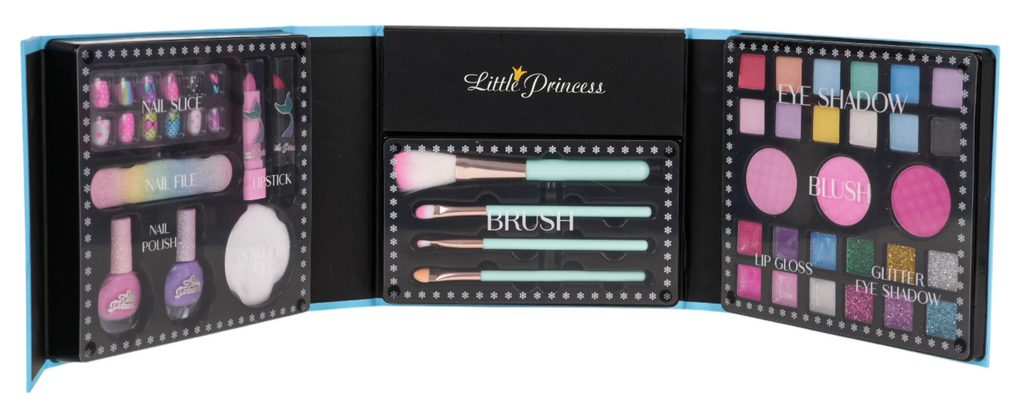 Ανακαλύψτε τον πολύχρωμο κόσμο της Χιονένιας Πριγκίπισσας – ιδανικός για μικρές λάτρεις του μακιγιάζ και του δημιουργικού παιχνιδιού. Στο αναδιπλούμενο κουτί με καθρεφτάκι θα βρείτε τα πάντα: από σκιές και γκλος, μέχρι βερνίκια και αυτοκόλλητα νυχάκια, καθώς και πινέλα και βοηθητικά αξεσουάρ. Όλα τα προϊόντα είναι απαλά για το δέρμα και αφαιρούνται εύκολα.