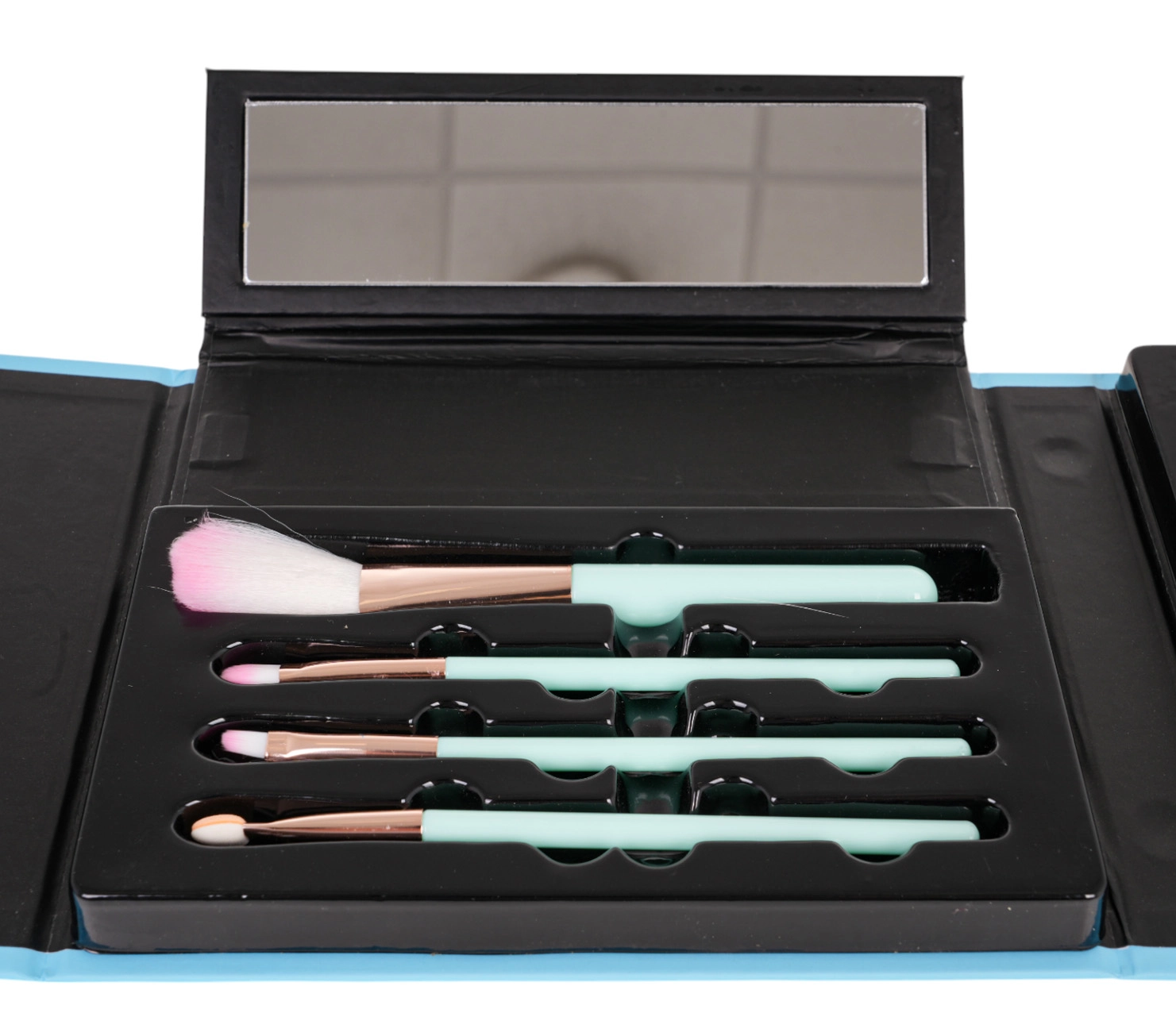- Πλήρης εξοπλισμός: 2 κραγιόν, 4 πινέλα, δίσκος ντεμακιγιάζ, καλλυντικός καθρέφτης