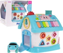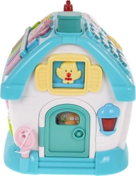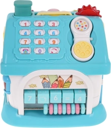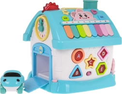 Το διαδραστικό σπιτάκι είναι κατασκευασμένο από ποιοτικό πλαστικό σε ελκυστικά χρώματα και έχει σχεδιαστεί ώστε τα παιδιά να αναπτύσσουν με διασκεδαστικό τρόπο την αναγνώριση σχημάτων, γραμμάτων και αριθμών. Καθεμία από τις τέσσερις πλευρές προσφέρει διαφορετικές δραστηριότητες – από ρολόι με πραγματικά κινούμενους δείκτες και πόρτα γκαράζ, έως πλευρά με αλφάβητο και φωτιζόμενα σχήματα, καθώς και μπροστινή πόρτα με κλειδί με φώτα και ήχους. Περιλαμβάνεται και μικρό αυτοκινητάκι για ακόμη περισσότερα παιχνίδια ρόλων.