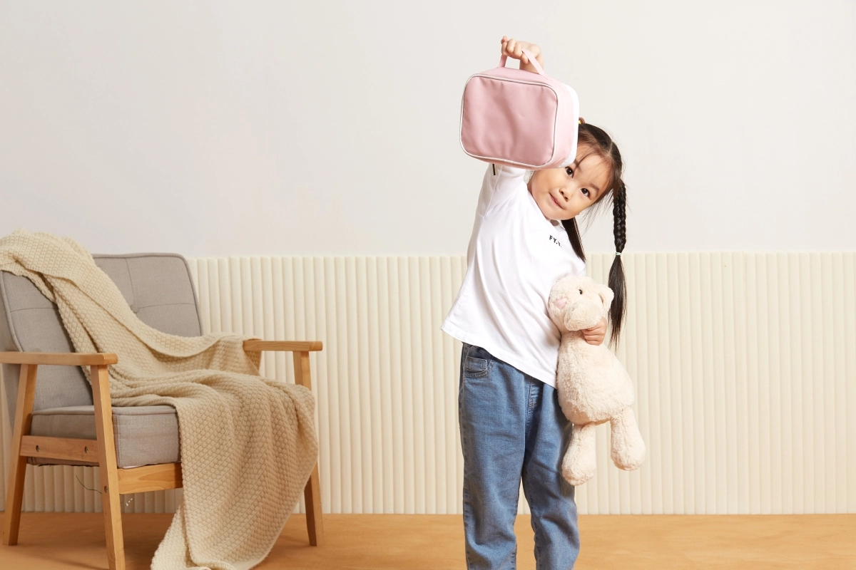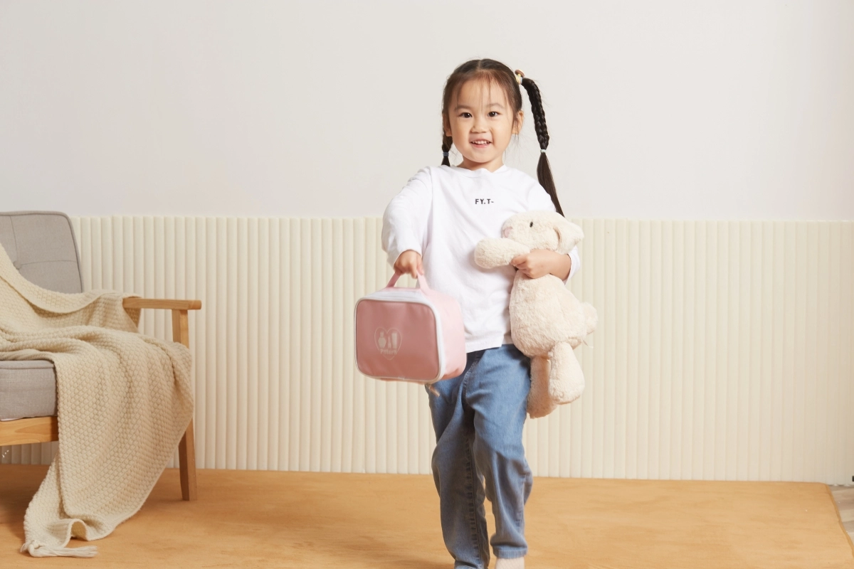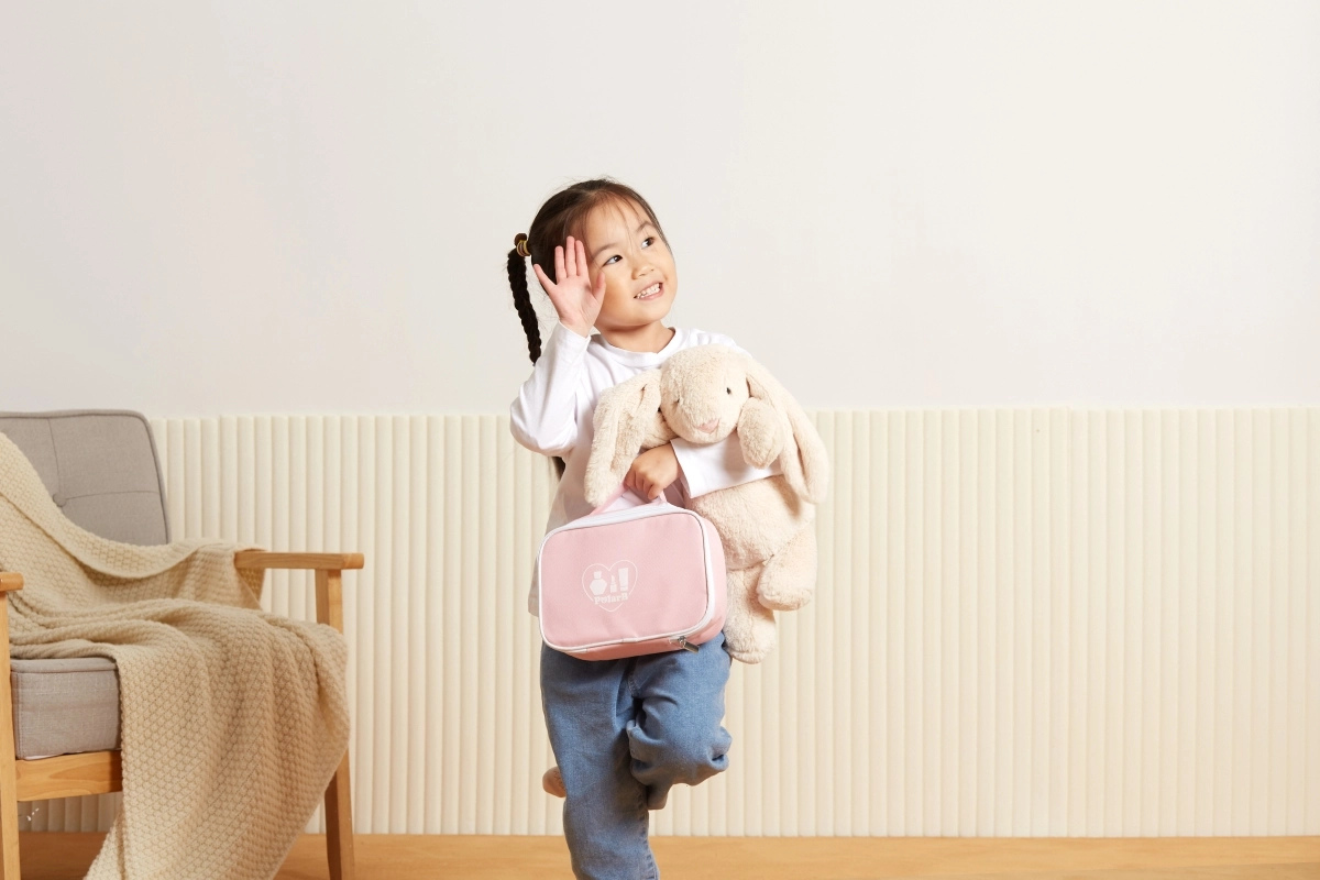 Η ροζ υφασμάτινη τσαντούλα PolarB κρατάει όλα τα αξεσουάρ τακτοποιημένα μαζί και διευκολύνει τη μεταφορά σε ταξίδια, στους παππούδες ή σε επισκέψεις.
