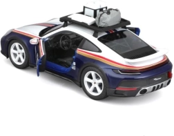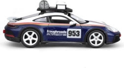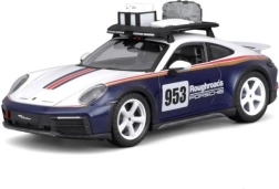 Κάντε δώρο σε εσάς ή στα παιδιά ένα ρεαλιστικό μοντέλο Porsche 911 Dakar σε κλίμακα 1:24. Αυτό το die-cast μοντέλο στον χρωματικό συνδυασμό μπλε, λευκού και κόκκινων ριγών εντυπωσιάζει με τις ακριβείς αναλογίες, τα εμβλήματα Roughroads και τον εμβληματικό αριθμό 953. Η μεταλλική κατασκευή σε συνδυασμό με πλαστικές λεπτομέρειες εξασφαλίζει αντοχή και πιστότητα στο πραγματικό πρότυπο.