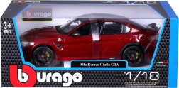 Ανακαλύψτε το κορυφαίο μεταλλικό μοντέλο ALFA ROMEO GIULIA GTA σε εντυπωσιακό κόκκινο μεταλλικό. Η σειρά BBURAGO 1:18 Plus προσφέρει ρεαλιστικές αναλογίες, κοφτερές λεπτομέρειες αμαξώματος και σπορ ατμόσφαιρα του αυτοκινήτου που φημίζεται για το χαμηλό βάρος, τις επιδόσεις και την ακριβή οδήγηση. Το μοντέλο ξεχωρίζει με αεροδυναμικές γραμμές, κίτρινες δαγκάνες φρένων και έντονη πίσω αεροτομή.