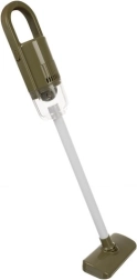 Κάθετη σκούπα με 3× AA, με φαρδιά κεφαλή για δάπεδα και στενό ακροφύσιο για γωνίες. Αναρροφά ελαφριές μπαλίτσες, διαθέτει διάφανο δοχείο και άνετη ενεργοποίηση με συρόμενο διακόπτη.