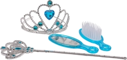Ένα γοητευτικό σετ για μικρές πριγκίπισσες από 3 ετών θα ενθουσιάσει κάθε λάτρη των παραμυθιών. Περιλαμβάνει τιάρα, μαγικό ραβδί, καθρεφτάκι και βούρτσα μαλλιών με διακριτικό μπλε στολισμό. Ασφαλής κατασκευή, ποιοτικά υλικά και μαγικές λαμπερές λεπτομέρειες ενθαρρύνουν τη φαντασία και το παιχνίδι ρόλων.