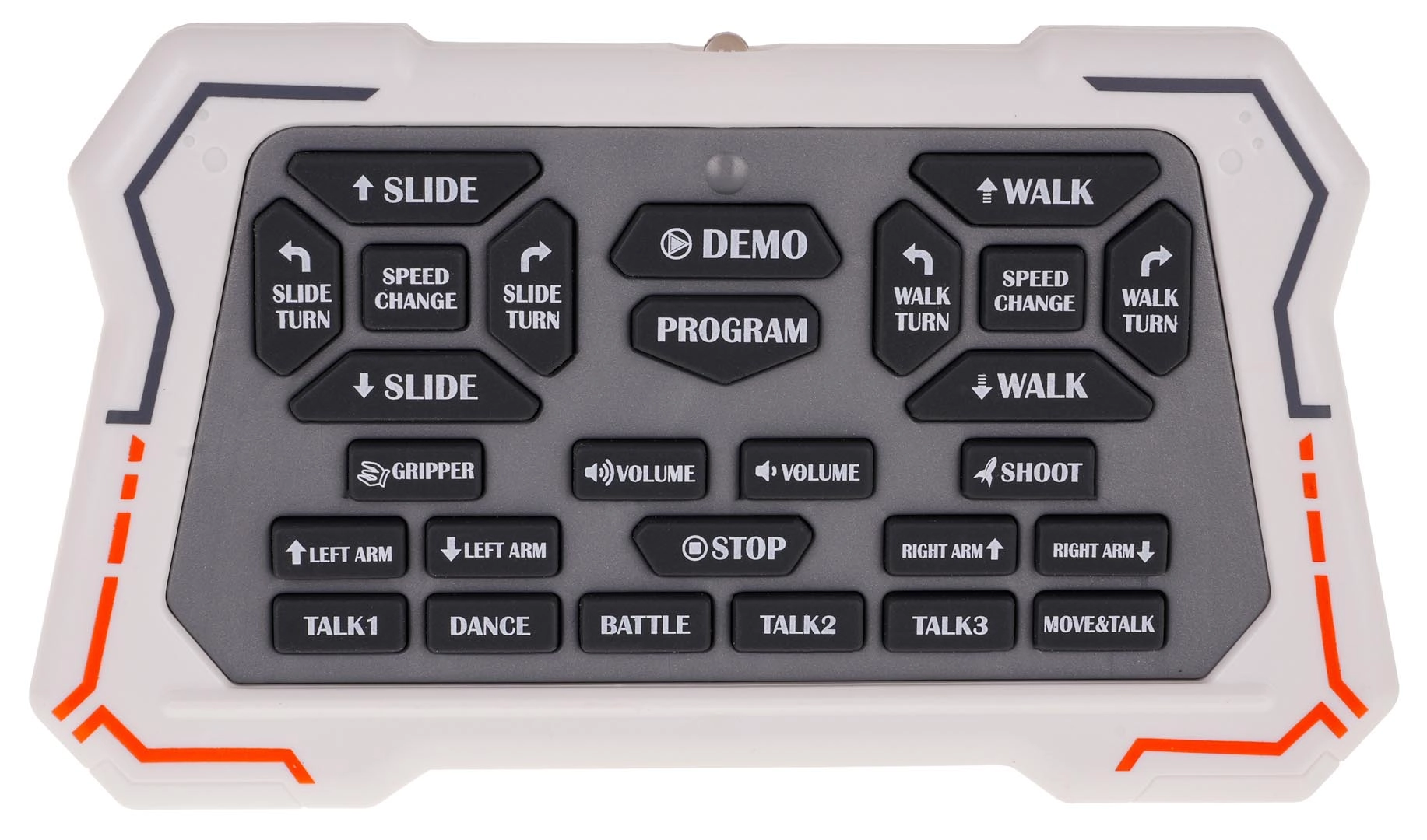 Το ρομπότ ελέγχεται εύκολα μέσω τηλεχειριστηρίου, το οποίο επιτρέπει τη ρύθμιση διαφόρων λειτουργιών κύλισης, βάδισης και επίδειξης. Ο προγραμματισμός δικών σας ακολουθιών κινήσεων εξασφαλίζει μια μοναδική εμπειρία παιχνιδιού.