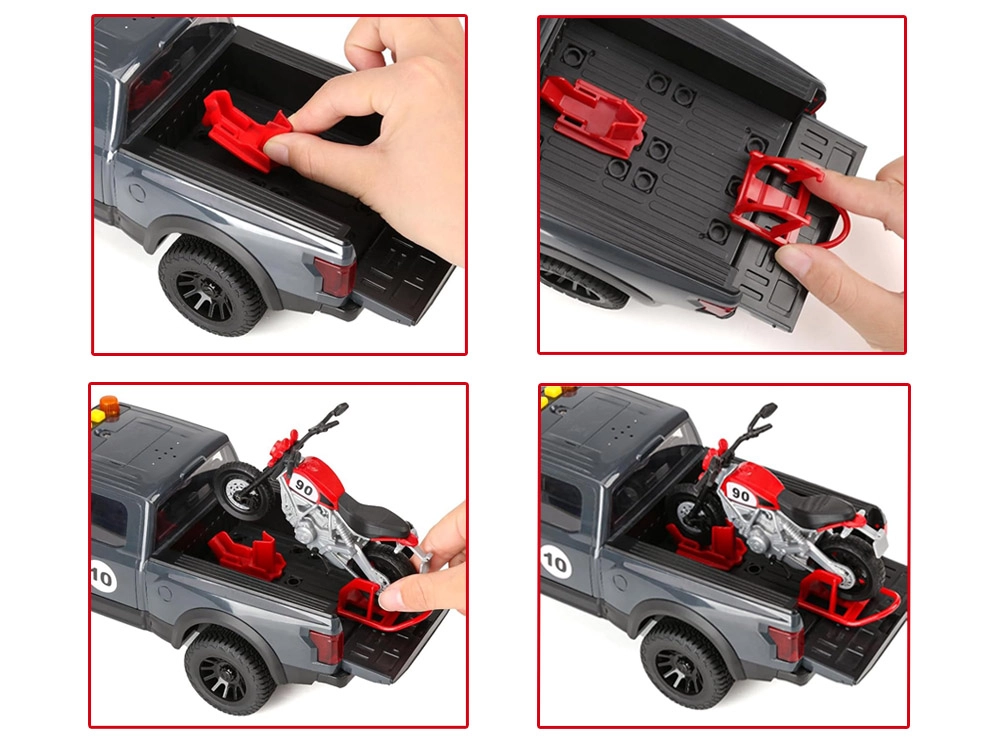 Το πίσω μέρος του pickup διαθέτει αποσπώμενη μοτοσικλέτα, επιτρέποντας ακόμη περισσότερες διαδραστικές επιλογές παιχνιδιού.