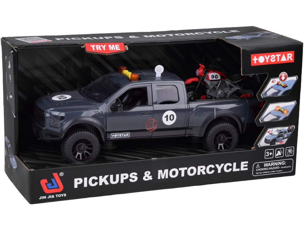 Το παιχνίδι pickup είναι σχεδιασμένο ώστε να προσφέρει στα παιδιά χώρο για δημιουργικό παιχνίδι. Στον πίσω φορέα τοποθετείται μια αποσπώμενη μοτοσικλέτα, που αυξάνει τη διαδραστικότητα του παιχνιδιού. Στην οροφή του οχήματος υπάρχουν τρεις διακόπτες που ενεργοποιούν τους φωτεινούς φάρους για ρεαλιστικές εμπειρίες. Το παιχνίδι ενισχύει τη δημιουργικότητα των παιδιών, τις χειρωνακτικές δεξιότητες και τη φαντασία.