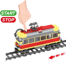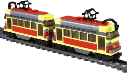 Αυτό το λεπτομερές σετ κατασκευής θα ενθουσιάσει μικρούς και μεγάλους δημιουργούς και όλους τους φίλους των αστικών μεταφορών. Τα δύο συζευγμένα βαγόνια τραμ, οι ρεαλιστικές ράγες και η κομψή στάση συνθέτουν ένα ελκυστικό σύνολο για δημιουργική κατασκευή και δυναμικό παιχνίδι. Χάρη στην κίνηση με μπαταρία, το μοντέλο κινείται πραγματικά πάνω στη γραμμή μετά τη συναρμολόγηση.