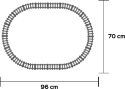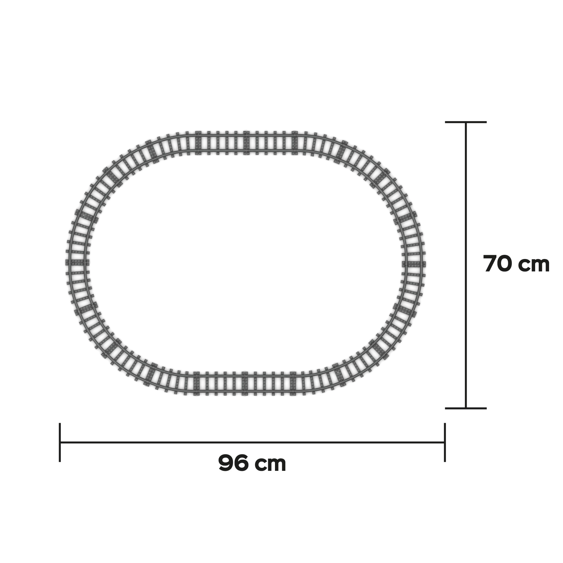 Η γραμμή αποτελείται από 16 καμπύλες και 4 ευθείες ράγες, που δημιουργούν σταθερό κύκλωμα για ομαλή κίνηση του διμελούς τραμ.